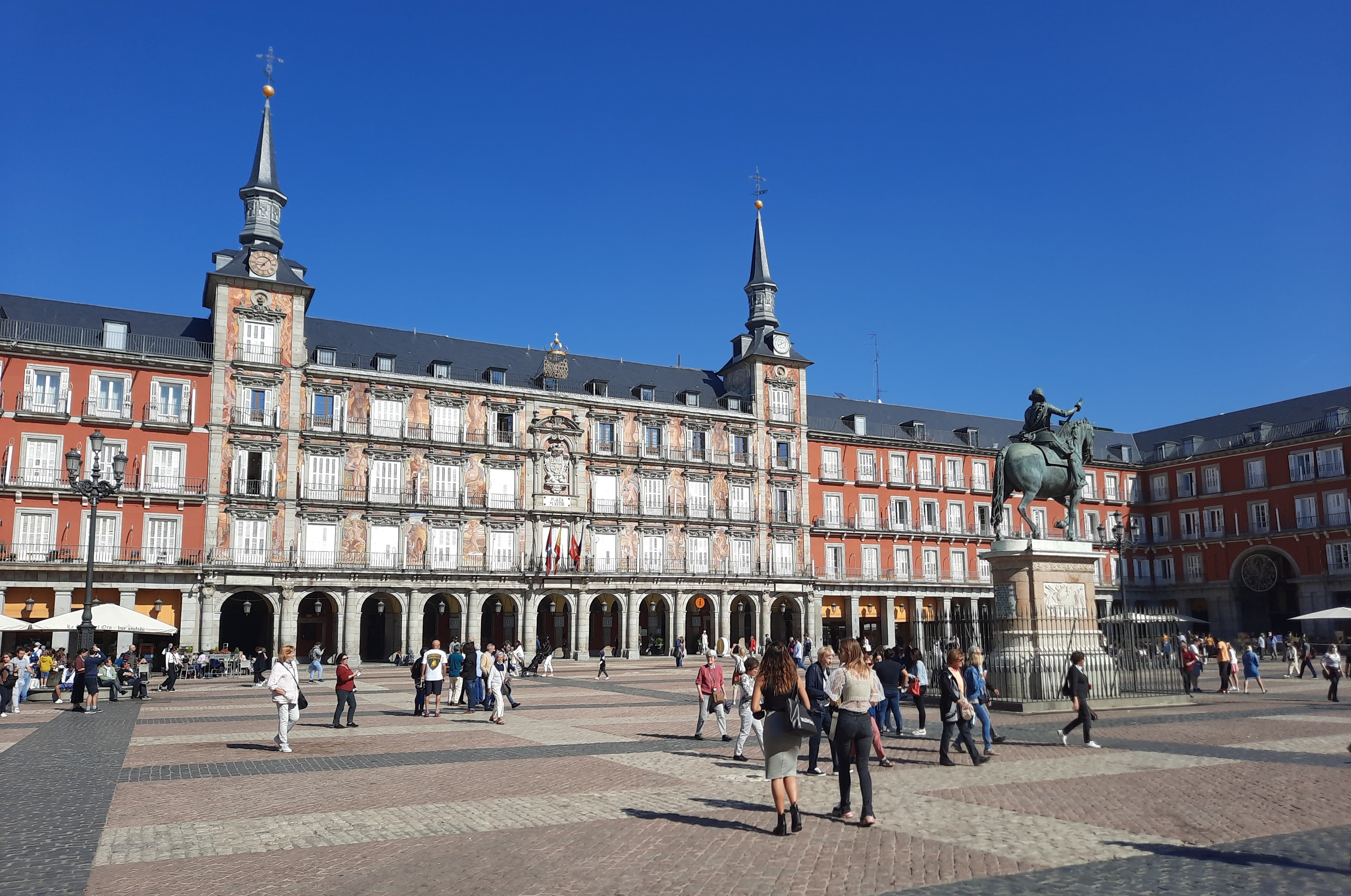 Das Museo Nacional Reina Sofia zählt zu den Besuchermagneten Madrids und wir dürfen uns glücklich schätzen, wieder eine Stunde vor der offiziellen Öffnung mit unserer Museumsbesichtigung zu beginnen. Die Sammlung ist in einem weitläufigen Gebäudekomplex untergebracht, der sich um einen begrünten Innenhof gruppiert. Das „Edificio Sabatini“ war ursprünglich ein Hospital, das 1788 von Karl III. gestiftet worden war und bis 1965 als Krankenhaus genutzt wurde. Das erst Ende der 1980er Jahre gegründete Museum gehört seit vielen Jahren zu den meistbesuchten Kunstmuseen Europas. In der Sammlung nehmen die Werke der spanischen Avantgarde einen breiten Raum ein, etwa Werke von Joan Miró, Juan Gris, Pablo Picasso und Salvador Dalí, sowie die wichtiger zeitgenössischer spanischer Künstler, wie Antoni Tàpies oder Eduardo Chillida. Das mit Abstand berühmteste Gemälde ist Picassos „Guernica“, ein Schlüsselwerk der Klassischen Moderne, mitsamt zugehöriger Skizzen, Studien und Entwürfe. Nachmittags unternehmen wir einen kurzen Abstecher zum Caixa Forum, einem extravaganten Kulturzentrum, das 2008 von den Architekturbüro Herzog & de Meuron auf dem Gelände des ehemaligen Elektrizitätswerkes Central Eléctrica del Mediodía gebaut wurde. Wir unternehmen danach einen Spaziergang durch das „Madrid der Österreicher“: Zur Zeit der Habsburger entstanden in diesem Barrio zahllose Kirchen, Klöster und kleine Konvente. Aus dieser Epoche haben sich bedeutende Zeugnisse barocker Architektur erhalten, die sich rings um die historische Plaza Mayor, den unbestreitbar schönsten Platz Madrids, und die ehemalige Jesuitenkirche San Isidor verteilen.
